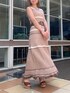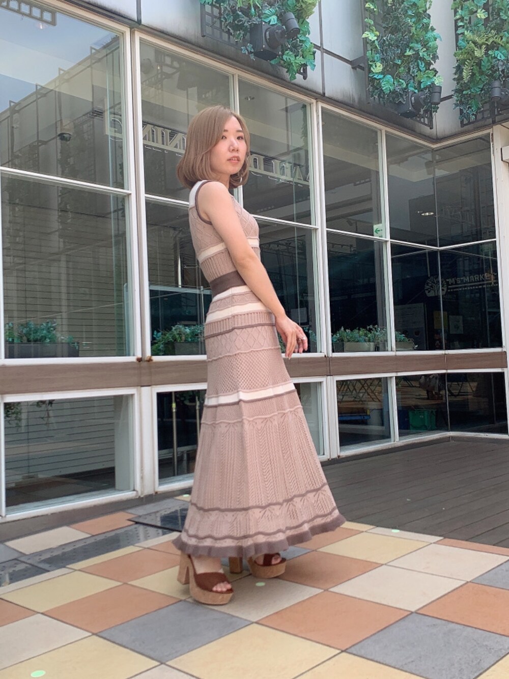 上から下まで可愛い!クロシェ切替がたっぷりで何層にもなっていてまるでミルフィーユ(*´`) ベルトのウッドバックルもとっても可愛い。。 ペチコート付きなのでインナーには悩まないですし、なんと言っても低身長でも安心して着れるニットワンピ