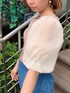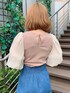 袖のボリュームがたっぷりで可愛い!ほんのり透け感があり涼しげ。 肩幅さまめに作られているので華奢みせ効果もあります◎ タイトスカートはブルーに可愛らしさを残しました( ¨̮ ) サンダルはオレンジにしトップスと統一感持たせました!ブルーやクリアでもあり❁⃘*.゚