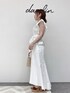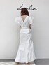 ヘルシーホワイトコーデ( ¨̮ ) バックオープンやマーメイドラインで全身白でも女性らしくなるようにまとめました。 のっぺりしないようにベルトはブラウスの上に付けると配色ステッチも入っているのでスタイルにメリハリがでるのでおすすめです◎ サンダルはコルクヒールかメニーストラップサンダルのクリアかブラウンがおすすめです(*´`)