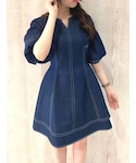 デニムワンピなら安定のインディゴ! どの季節でも違和感なし◎【ワンピ】Sサイズ着用。ステッチがはっきりしているのと縦に入っていてスッキリ大人可愛い。夏はウッドライクのベルトする涼しげに(*´`)【シューズ】ベージュ、Mサイズ着用。ワンピの色が濃いのでシューズは肌なじみいい色を選んで脚長効果を。秋はブーツ合わせるとまた違う雰囲気に( ¨̮ )