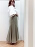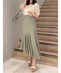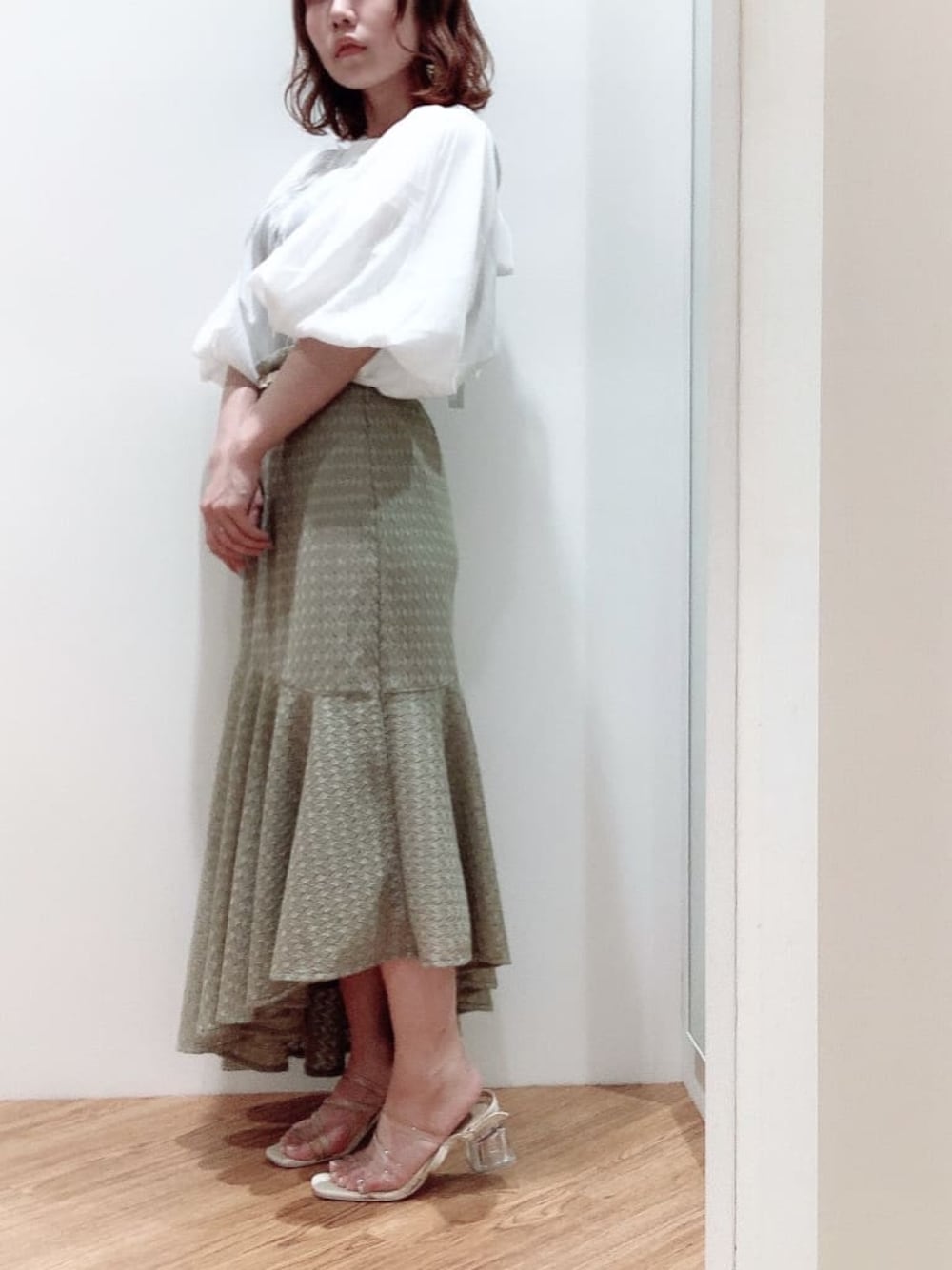 dazzlinらしいグリーン( ¨̮ ) 【スカート】アシンメトリーで大人可愛いデザイン。フリルのドレープが履くとより綺麗に出ます!フリーサイズなのでベルト緩く感じる方は細ベルトおすすめします( ¨̮ )【トップス】上品に女性らしくしたかったので、少し光沢があるふんわりしたブラウスを選びました。肩の切り替えがないので肩幅気にされてる方でもガチっとなりすぎず着れますよ(*´`)