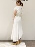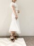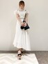 ホワイトコーデでも甘くなりすぎないようにベルトして、バッグとシューズはブラックにして締めました( ¨̮ )【トップス】ホワイトで膨張色に感じますが袖のフリルがボリュームあるのでスッキリした印象になります!バストまわりも袖がカバーしてくれます( ¨̮ )【スカート】夏らしくホワイトに!切り替えが入っているのとスカートがフレアなので足元がすっきりして見えます!【シューズ】コルクヒールで足元スッキリ倍増させました!足首ストラップあるサンダルがおすすめです(*´`)