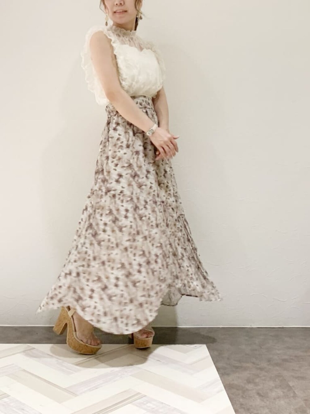 tomomi(dazzlin)のサンダル「クリアストラップコルクヒールサンダル」を使ったコーディネート