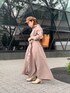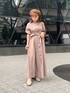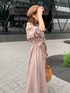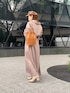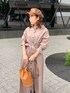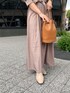 カジュアル苦手なフェミニンさん必見!【ワンピース】くすみ系ピンクが甘くなりすぎず可愛い。ウエストのリボンをキュッとしてブラウジングして着てます。ブラウジング無しですと、厚底&ヒールのシューズが必須かなと!【小物】ブラウンでまとめて柔らかい印象にしました( ¨̮ )シューズはアイボリーかブラウン系がおすすめです!
