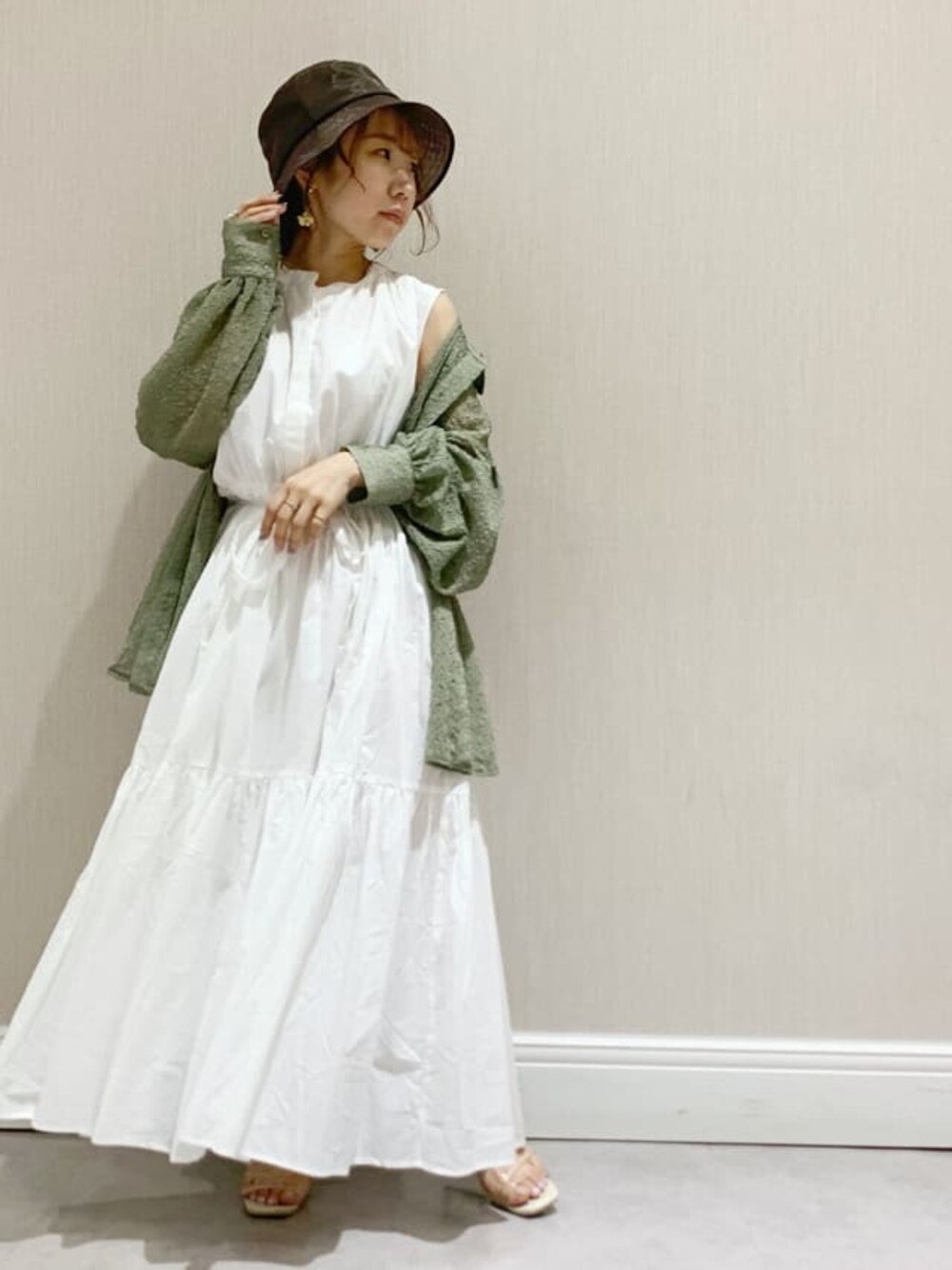 ナチュラルコーデ𓈒𓂂◌𓏸【ワンピース】カラーシャツ合わせたかったので真っ白にしました。コットン素材でふんわりボリュームが女の子らしさたっぷりでかわいいです(♡)145の私だとたっぷりブラウジングすれば、ローヒールも安心の丈感になります!【シャツ】女の子らしくなりすぎないよう、カラーシャツにしゆるっと着るのが大人女子感upさせてくれます。【小物】シースルーのバケハが今年っぽく更に大人っぽくしてくれます。【シューズ】ロング丈の羽織り合わせるなら、ローヒール。ショート丈なら厚底ヒールもおすすめです( ¨̮ )