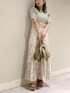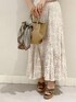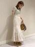 ヴィンテージ可愛いスカートで大人っぽく𓈒𓂂◌𓏸【トップス】程よく肌見せ。インナーは見えないので、気にせず着れます¨̮⑅*スカートベージュにしたかったので優しくまとまるグリーンにしました。【スカート】くすみカラーでヴィンテージ感あるベージュにしました!Sサイズ着用。145の私だと少し長めなので、ヒールマストです!ウエストも普段Sサイズな方は若干緩めかも。切り替えないので細めベルトも合わせやすいです!【シューズ/バッグ】全部ブラウン系でまとめてヴィンテージ感更にアップさせました!トレンドのスカーフも巻くと可愛いです♡♡