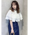 カジュアルもフェミニンに𓈒 𓂂𓏸パンツスタイルも可愛らしくなるようにコーディネートしました( ¨̮ )【トップス】トレンドのシャツもダブルフリルでフェミニンに。ケープ風なのでバスト回りカバーしてくれます!顔周りはシンプルなスタンドカラーでスッキリ!【パンツ】大好きなピンクにしました✿*:Sサイズ着用。145だと少し長めなので足元は厚底ヒールで足の甲が広めに見えるものがおすすめです!