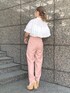 カジュアルもフェミニンに𓈒 𓂂𓏸パンツスタイルも可愛らしくなるようにコーディネートしました( ¨̮ )【トップス】トレンドのシャツもダブルフリルでフェミニンに。ケープ風なのでバスト回りカバーしてくれます!顔周りはシンプルなスタンドカラーでスッキリ!【パンツ】大好きなピンクにしました✿*:Sサイズ着用。145だと少し長めなので足元は厚底ヒールで足の甲が広めに見えるものがおすすめです!