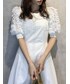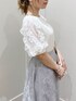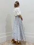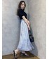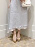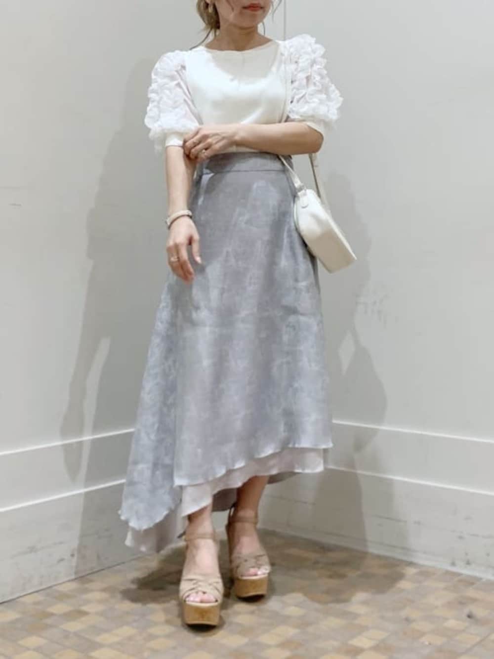 キレイめブルーコーデ【トップス】フリルたっぷりのボリュームスリーブで新感覚!首元も詰まりすぎずボートネックに近いので少しカジュアルめな印象で着れます。可愛すぎるの苦手な方にもおすすめです。【スカート】Sサイズ着用。足首の1番細い部分が出てスタイルアップ!長い部分が若干擦りそうなのでヒールマスト【シューズ】足をより綺麗に見せたかったのでコルクヒールで合わせました✿*: