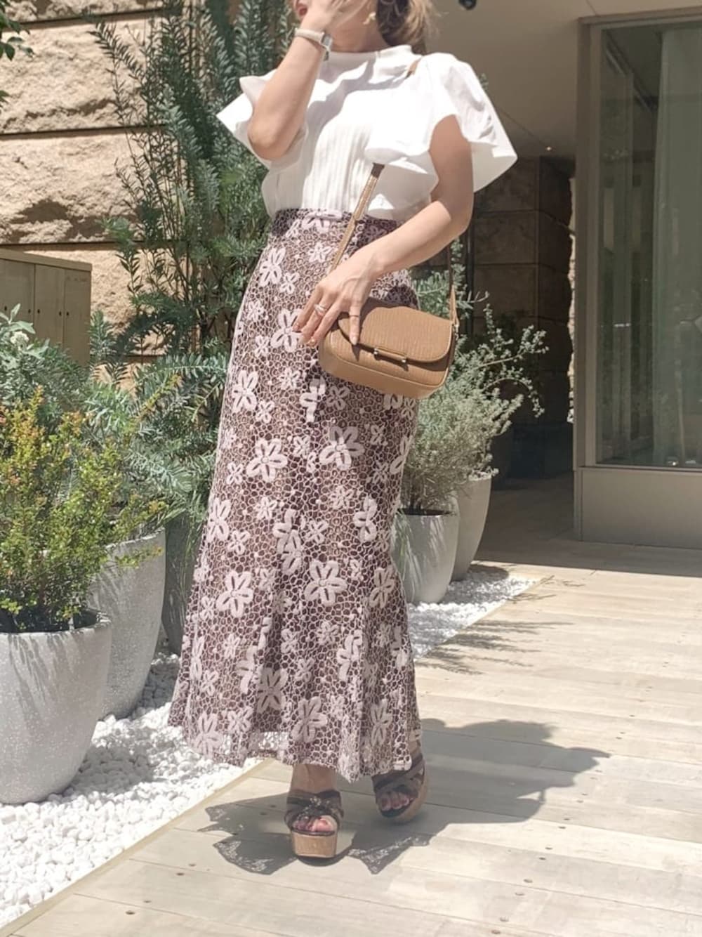 夏のデートコーデ✿*:【トップス】ノースリーブ苦手な方必見!フリルが二の腕カバーしてくれます!身頃の内側からのたっぷりなフリルが華奢見せしてくれます!思わず守りたくなる女子完成します!笑【スカート】150cm以下でも綺麗に履きこなせるマーメイドスカートです。Sサイズ着用。タイトめなのでボディーラインが綺麗にでますが、締め付け感がないので着心地いいです!【シューズ】ヒールがあるコルクヒールサンダルがおすすめです( ¨̮ )