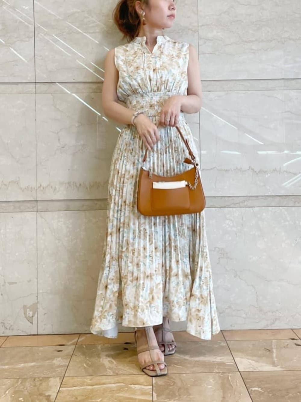 低身長でも安心な丈のワンピース【ワンピース】少し短めなのとウエストのシャーリングでキュッと上がる丈感になるので145の私でも足首が見える丈でした( ¨̮ )シューズも色々楽しめます!前後がボタンとホックで開くので首詰まり苦手な方は前のホック開けて着るのがおすすめです(*´`)水彩タッチの花柄なので清涼感あり夏らしく可愛いです( ¨̮ )