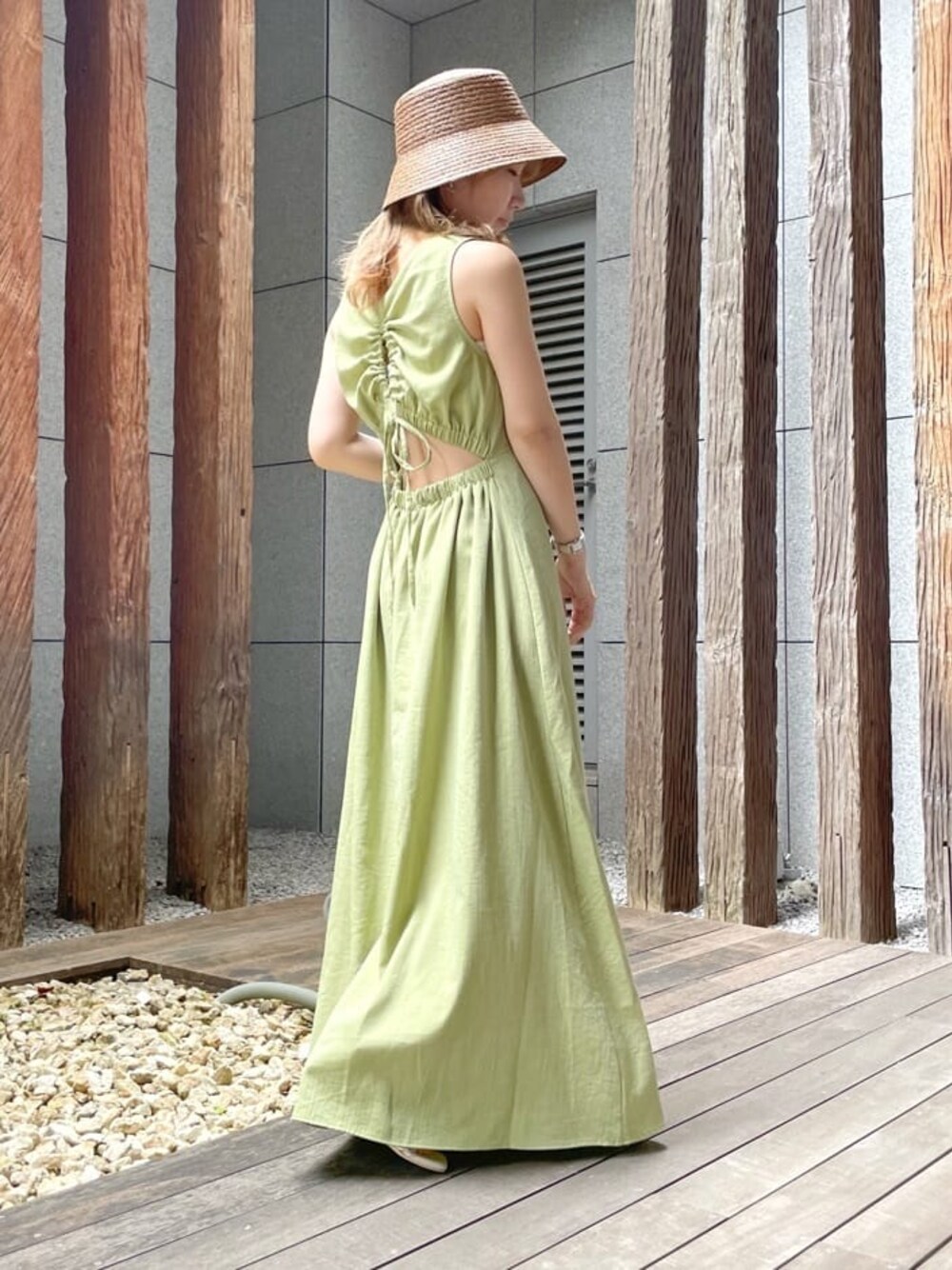 ヘルシー大人コーデ【ワンピース】フリーサイズなので145の私だと6センチヒールでギリギリでした!ウエスト周りも普段Sの方ですと緩めですが、インナー見えるようなぷかぷか感はないので安心して着ていただけます!ウエスと切り替えがかなりハイウエストなので身長高みせしてくれます。海などで着てもかなり可愛いです!