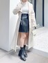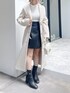 【アウター】Sサイズ着用。145の私でも足首かかるくらいで階段でも引き摺らない丈感でした!低身長さんはアウターの裾からお洋服出ない方がスタイルアップが叶うコートです! 【スカート】Sサイズ着用。太もももちゃんと出て綺麗にミニ丈で着こなせます。ロングコートでのスタイリングの際はショートブーツが大人っぽくまとまります。