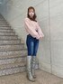 カジュアルなクリスマスコーデ♡【アウター】Sサイズ着用。145cmの私で足首隠れるくらいでした。低身長さんはタイトめなお洋服と合わせるとよりスタイルアップが叶います!【トップス】フリーサイズ。ラメ感ある素材ですが全然チクチクしないので着心地よくかなり温かいです!【デニム】Sサイズ着用。ストレッチが効いてるのでタイトめにきれます。丈感裾少し余りますが、スキニーなので引き摺らないです!【ブーツ】Mサイズ着用。普段22.5~23.0