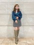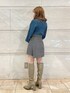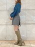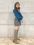 【トップス】差し色でブルーにしました。スカーフが顔周りをより華やかにしてくれます。シャリ感あるニットなので春まで着やすいです!【ボトムス】Sサイズ着用。145の私でも太ももが綺麗に出る丈感です。【シューズ】Mサイズ着用。普段22.5~23.0