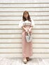 【トップス】Fサイズ着用。オフショルにしてもシャーリングがしっかりしてるので落ちてこないです!オフショル苦手な方は肩出さずにも着れるデザインです!【スカート】Sサイズ着用。サスペンダーで丈感調整出来るので低身長な方でも着れます。145の私で足首隠れるくらいになります。【シューズ】Sサイズ着用。22.5~23.0