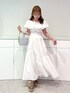 垢抜けフェミニンコーデ♡ 【トップス】フリーサイズ着用。2WAYタイプでオフショルにして着ることも出来ます!ウエスト周りは脇ファスナーでスッキリ見せてくれるので、どんなボトムスでもスタイルアップが叶います!【スカート】Sサイズ着用。145センチで足首ギリ出るくらいでした。ぺたんこシューズでも安心です!控えめなラメ感が夏らしく涼しく着れます!【シューズ】Mサイズ着用。足のサイズ22.5~23.0、ベルトが調節出来るので少し大きくても足首ホールドすれば問題無さそうでした!今まで履いた厚底で1番軽かったです!