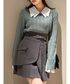 【アウター】Fサイズ着用。145cmでも膝上でミニ丈との相性◎白だけツイードなので春先までジャケット感覚で羽織りやすいです!【トップス】2wayタイプなのでどちらを前でも着ていただけます。抜け感出したかったのでデコルテ見えるようにきました。ニット素肌で着るの苦手な方でも肌触りとてもいいので一枚で着やすいです!【スカート】Sサイズ着用。145cmの私でも太ももチラッと見える丈でした!ベルトホールも多めにあるので、普段ボトムスXSサイズの方でもゆるゆるになり過ぎず着れます。【シューズ】Mサイズ着用。足のサイズ22.5~23.0