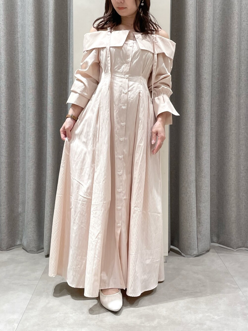 tomomi(dazzlin)のシャツワンピース「ウエストタックオフショルシャツワンピース」を使ったコーディネート