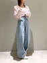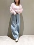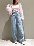 ゆるかわコーデ♡ 【トップス】ゆるっと感出したくて前開きで抜き襟にして着ました◎ラメ入りだけど全然チクチクしなくてストレスフリーです!敏感肌の方でも着やすいと思います◎ 【デニム】XSサイズ着用。145cmで踵隠れる丈でした。カーブデザインでふんわり着れて可愛いです♩ 【シューズ】Mサイズ着用/ロングブーツのカバー無しで着用/足のサイズ22.5~23.0