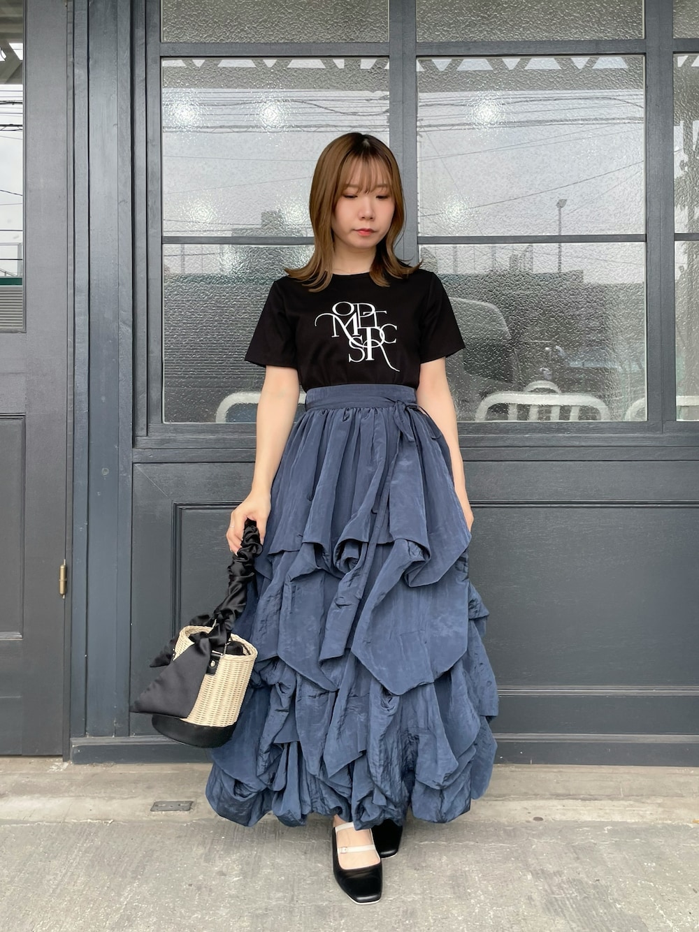 【トップス】Fサイズ着用。 生地がサラサラで着心地◎ シワにもなりにくいのでお手入れも楽ちんです! 【スカート】Sサイズ着用。 145cmでくるぶし隠れるくらいでした! 柔らかい素材で落ち感あるので、ボリュームも思ってたよりでなく、軽くて着やすいです◎ 【シューズ】Mサイズ着用。 足のサイズ22.5~23.0
