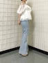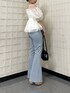 【トップス】Fサイズ着用。ハイウエストの切り替えとオフショルデザインでフリルなのに甘くなりすぎず大人可愛く着れる1枚です◎ 腕周り、肩周りのゴムもしっかり伸びるので締め付け感なしです!バストまわりは少しタイトめでスッキリきれました! 【デニム】Sサイズ着用。145cmでヒールマストですが、裾フレアで長めが脚長効果がありスタイルアップ出来ました!ウエストはdazzlinのお洋服普段XSサイズの私でも緩すぎなかったです◎ 【シューズ】Sサイズ着用。足のサイズ22.5~23.0