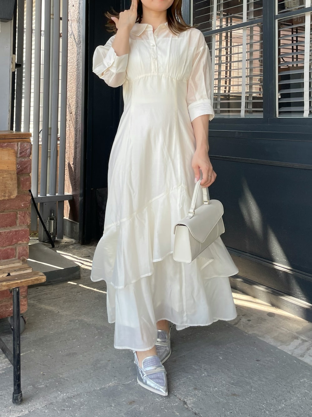 tomomi(dazzlin)のワンピース「レイヤードシャツドッキングワンピース」を使ったコーディネート