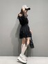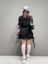 【トップス】Fサイズ着用 袖少し長めでしたが、腕が開いてるのとシアー素材なので夏でも涼しく着れます! 【スカート】Sサイズ着用 中がパンツになってるのと、ファスナーレスで後ろゴムなので楽ちんです! 普段XSサイズで割とジャストに近いのとファスナーレスで履く時お尻ちょっと不安だったのでワンサイズ上げても良さそうです。 【シューズ】Mサイズ着用 足のサイズ22.5~23.0 甲高で付属の紐が丸く当たる感じがしたので、平たい紐に変更してます! アレンジも楽しめるのでおすすめです◎