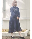 ロングbearジャガードワンピースは光沢のあるさらっとした生地感です。冬らしいカップルワッチやファーが使われているレースレイヤードブルゾン、フリルベロアラバーソールブーツなどで合わせ、季節感を出しました。ワンピースの丈感は長すぎず短すぎず、どの身長の方にも使っていただけると思います!