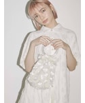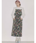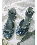 チューリップジャンスカはカラフルで春らしい色味のアイテム。大人メリーコーデにはネイビーがおすすめです!フリルボウタイブラウスはボリュームスリーブなのでジャンスカやキャミワンピなど袖が出るものでレイヤードするとかわいいです。スパンコールベロアミュールのカーキはスパンコール部分が青なので、ジャンスカに合わせて選んでいます。