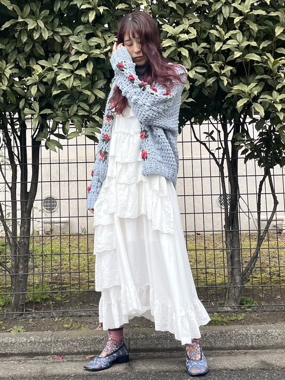 人気のクロシェカーディガンに新色が登場!アイスブルーは春らしく、トレンド感もありおすすめです!イレギュラーレースキャミワンピースはオフホワイトにし明るい印象になるように致しました。diaryエアリーメッシュtopsとmistスパンコールシアーshoesはどちらも透け感があって涼しげなので、夏まで使っていただけるアイテムです。