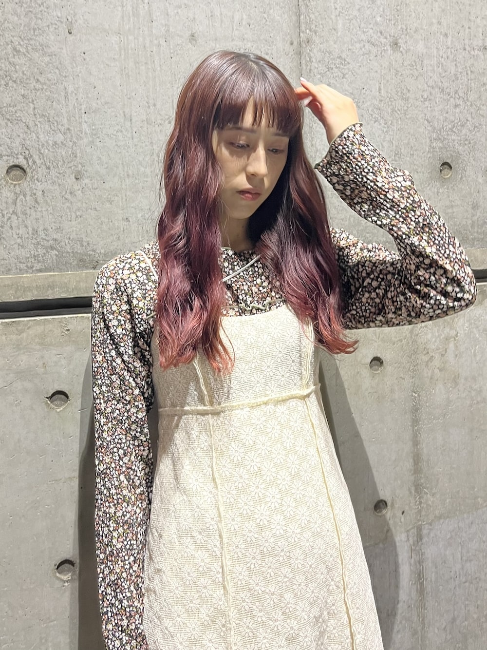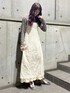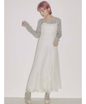 ランダムストラップキャミワンピースはシルエットがとても綺麗で、スタイルアップ効果も高いです。裾のディテールも凝ったデザインなのでコーデが華やかになります。flower mellow topsをレイヤードして少しカジュアル感を取り入れました。スパンコールベロアミュールは靴下と合わせてmerry jennyらしく取り入れるのがおすすめ!