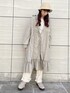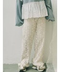 ピーチリボンフリルカラーワンピースを使ったレイヤードコーデ。前を開けて着ることもできるので、ロングシャツのように上半身はボタンを開け、肩抜きで着ています。さらにパンツで合わせることでガーリーすぎずカジュアル感が出せて、おしゃれ感も上がります!flowerフリルレースカーディガンはぴたっとしたシルエットなので、インナーとして着てももたつかず着回しのきく一枚です。