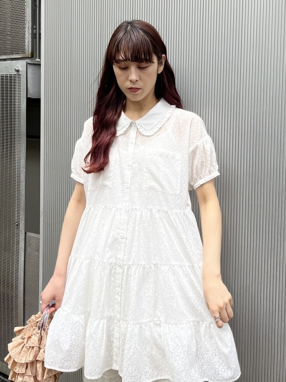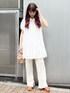 flowerコットンティアードワンピースはパフスリーブとティアードでガーリーさを出せて、透け感が夏らしくトレンド感のある一枚。ミニ丈なのでパンツをレイヤードしてチュニックのように取り入れるのもおすすめです。シアーニットラメメロウパンツは締め付け感がなく履きやすいながらも綺麗なシルエットと裾のスリットやラメのディテールでラフすぎず、コーデを大人っぽく見せてくれます。