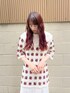 flowerクロシェニットチュニックはざくっと編んだ透け感のあるアイテムなので、レイヤードにも使っていただけます。オフホワイトのワンピースに重ねるだけでお花のモチーフがアクセントに。コットンフリルレースワンピースのフリルの襟を出して着るのがかわいい!ワンピースの丈がすっきりとしているので、レースアップのシューズで足元まできちんと感が出るようにしました。
