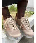 アシメフリルカットソーは、レイヤードすることで可愛さが引き立ちます!同色系のカーデと合わせました。レースアップケーブルニットカーディガンはサイドのリボンがポイント。jacquard floral sneakerは、ソールが花柄になっていてデザイン性が高いのに、とても歩きやすいので長時間歩く際などにもおすすめです!