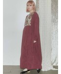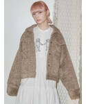 ジャガードコンビコールワンピースは、ゆったりめのシルエットなので、ステンカラーエコファーカバーオールのようなショート丈のアウターを羽織るとメリハリがつけられます!ワンピースのジャガードの柄に合わせて、ヴィンテージ感の出る色使いにしました。