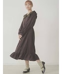 人気のギャザースリーブAラインコートは大きめのボタン、長めの丈、ギャザーでたゆんとした袖などディテールが凝っていてかわいいです!Bigフリルカラー2wayワンピースの鮮やかなパープルをアクセントにした黒コーデにしました。個性的で大人っぽいながら、ところどころにガーリーな要素を加えるのがポイントです。