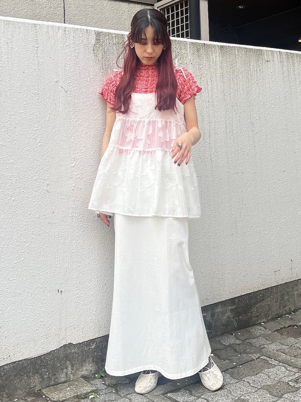 nanaka(merry jenny)のパンプス「バイカラーレースストラップシューズ」を使ったコーディネート