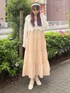 レースアイテムを使った大人ガーリーコーデ!キャミワンピースはたっぷりのティアードなのでショート丈のレースカーディガンを合わせてスタイルアップ効果◎キャミワンピは肩紐で長さの調節も可能です。