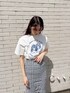 カジュアルガーリーコーデ。Tシャツはビッグサイズすぎず、程よいゆったり感なのでタイトなボトムにもインしやすいです。ラフ見えしないデザインなので、大人っぽいコーデにも相性◎スカートは伸びのいい柔らかい生地なので締め付け感なく楽ちんです◎
