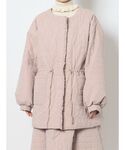 キルトのセットアップコーデ。少しくすみのある落ち着いたピンクなので、甘すぎず着られます。ジャケットはウエストのギャザーを調節できるので、ボトムに合わせてシルエットを変えられます!骨格ウェーブさんは、ウエストを絞ってメリハリをつけるのがおすすめです◎