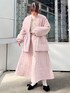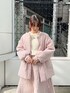 キルトのセットアップコーデ。少しくすみのある落ち着いたピンクなので、甘すぎず着られます。ジャケットはウエストのギャザーを調節できるので、ボトムに合わせてシルエットを変えられます!骨格ウェーブさんは、ウエストを絞ってメリハリをつけるのがおすすめです◎