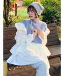 ニットベストがドッキングされているワンピースは、一枚でもふわっと華やかなアイテム。高身長さんはパンツをレイヤードして少し大人っぽくも。レースパンツは脚をきれいにみせてくれるシルエットで、一枚持っておくとレイヤードコーデで活躍します◎年中使えるのも嬉しいポイント。