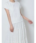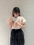 Tシャツ×スカートにフリルたっぷりのビスチェを組み合わせてより華やかにしました!ビスチェはショート丈なので、ワンピースなどに合わせても目線上げでスタイルアップ効果も◎ティアードスカートはふわっとボリュームがありつつすっきりした丈感なので低身長さんにもおすすめです。