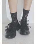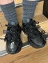 キャミワンピースは、肩紐のリボンと裾のバルーンデザインで、無地ですがしっかり華やか!163cmで膝上数センチのちょうどいい丈感でした!裾にボリュームがあるので脚を細く見せてくれるのが嬉しいポイント◎ダッドシューズは軽くて歩きやすく、たっぷりのリボンでガーリーなアイテムと相性◎!