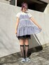 ベビードール×ミニボトムコーデ 【Tシャツ】 コンパクトなサイズ感でレイヤードにもおすすめ!シンプルなプリントなので合わせやすく、さまざまなコーデに取り入れられます! 【キャミソール】 透け感のあるギンガムで夏らしいレイヤードコーデが楽しめます!ミニボトムと合わせるとミニワンピースのように着ていただけます◎ 丈は肩紐で調節可能です! 【スカート】 繊細なレースが華やかなスカートは少し短めの丈感なので脚長効果◎ 広がりすぎないシルエットなのでレイヤードで裾だけ覗かせるスタイリングもかわいいです! 【シューズ】 ギンガムチェックのパンプスは足元にもアクセントをつけてくれるアイテム。 ローヒールなので疲れにくく、歩きやすい! 靴下合わせもおすすめです。