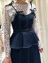 トップスは、華やかな色味のお花柄で無地のワンピースやボトムに合わせてもコーデが華やかに!肩に入ったカットアウトでさりげなく肌見せでき、トレンド感のある1枚です。 キャミワンピースは、デニムなのでオールシーズン着回せる万能アイテム。 高めの位置に設定されたペプラムが脚長効果◎スカートはフレアなので綺麗なAラインで着ていただくことができ、体型カバーも叶います。 シューズは、太めのローヒールなので、普段ヒール付きのシューズを履かない方にも挑戦していただきやすいです!くしゅっとしたディテールが大人可愛いアイテム◎