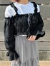ヴィンテージライクなレイヤードコーデ 【トップス(Tシャツ)】 長袖Tシャツは、一枚持っておくと着回し力が高いので便利です! オーバーサイズなのでヴィンテージ感のある一枚! 【トップス(ブラウス)】 トレンドのオフショルダーですが、ショート丈&肩紐付きなので今回はビスチェとしてレイヤードコーデに致しました。柔らかくて伸びのいい生地なので体のラインを拾いすぎずガーリーに着ていただけます。 【スカート】 裾の部分に透け感があるのがポイント。たっぷりフレアですが重たくみえないです。 ウエストはゴムなので着心地◎ 【シューズ】 弾力のあるクリアソールなので安定感のある歩きやすさと、甲の部分はフリルのついたストラップできちんと感もガーリーさも演出できる万能アイテム。他のシューズよりもゆとりのあるサイズ感です。