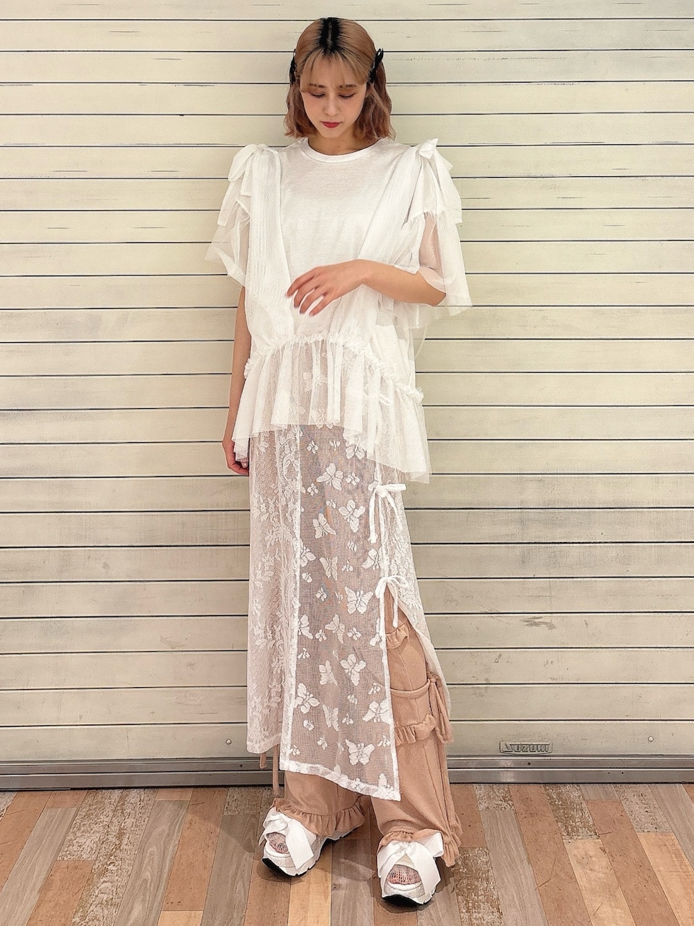 nanaka(merry jenny)のスカート「Butterflyレースレイヤードスカート」を使ったコーディネート
